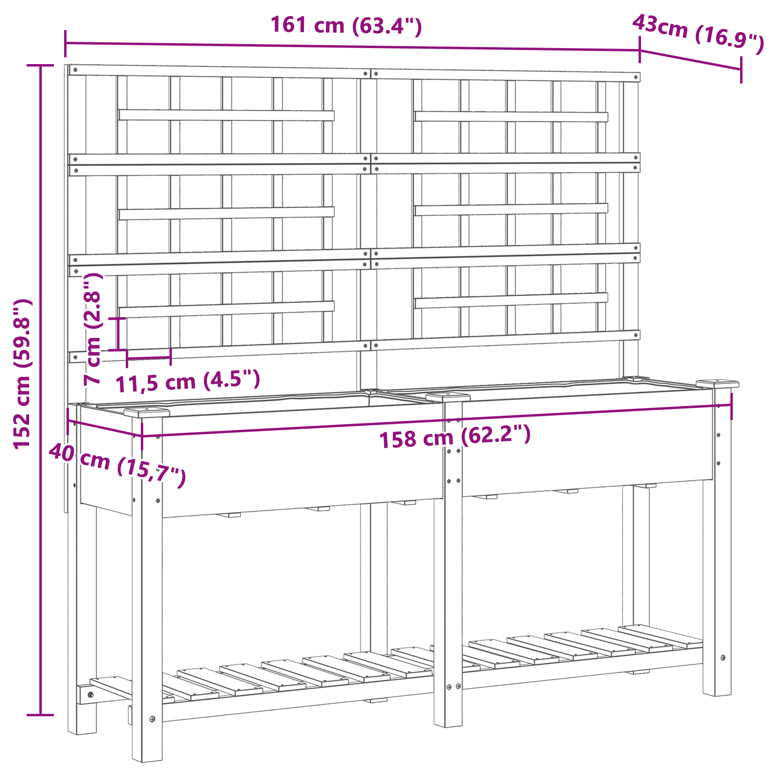Jardiniere cu spaliere și raft 161x43x152 cm Lemn masiv de pin GartenMobel Dekor