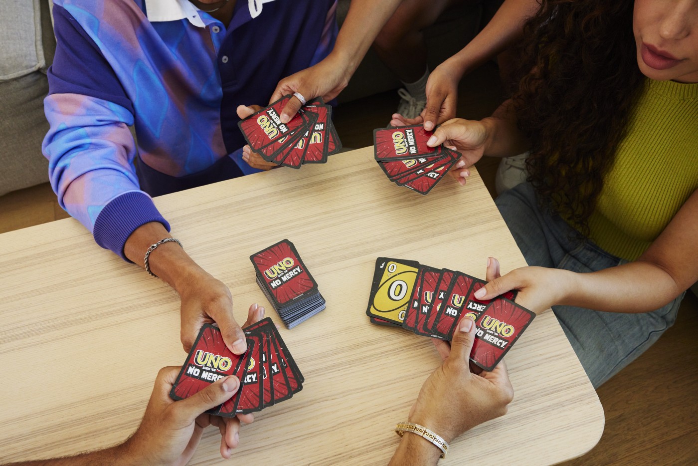 Joc de carti UNO No Mercy Mattel, editie intensa pentru familie