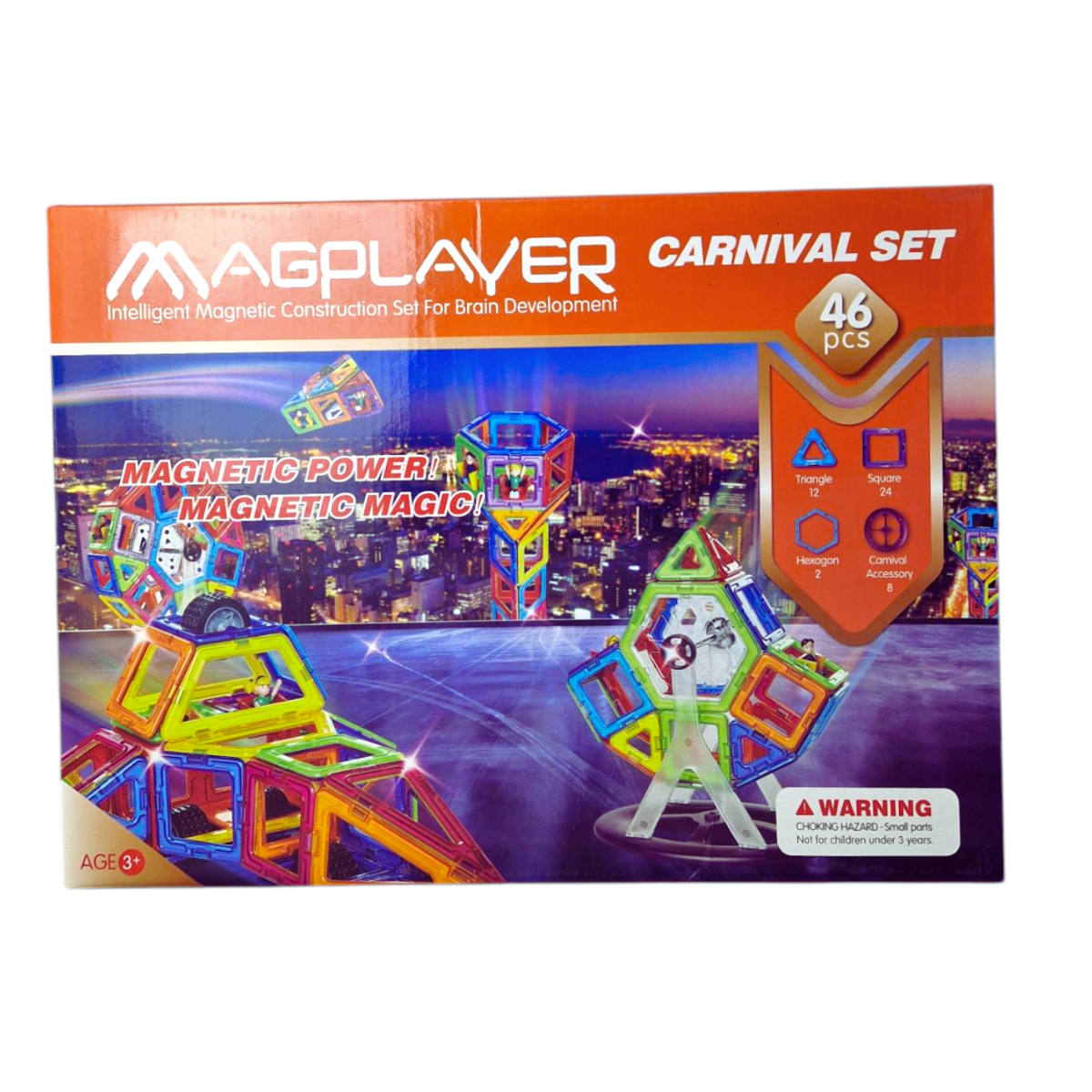 Jocul de constructie magnetic MAGPLAYER - 46 piese este un produs inovator ce stimuleaza dezvoltarea abilitatilor cognitive si a vederii in spatiu la copii.