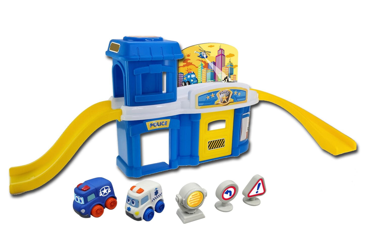 - Include: 2 masinute, semne de circulatie, rampe, piese pentru asamblarea sectiei de politie