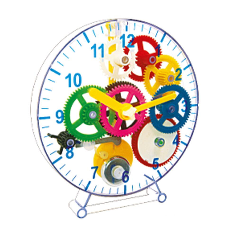 Mod de utilizare: piesele se asamblează urmând instrucțiunile incluse în pachet. După montare, copilul poate analiza mecanismul vizibil și poate exersa citirea orei într-un mod interactiv.