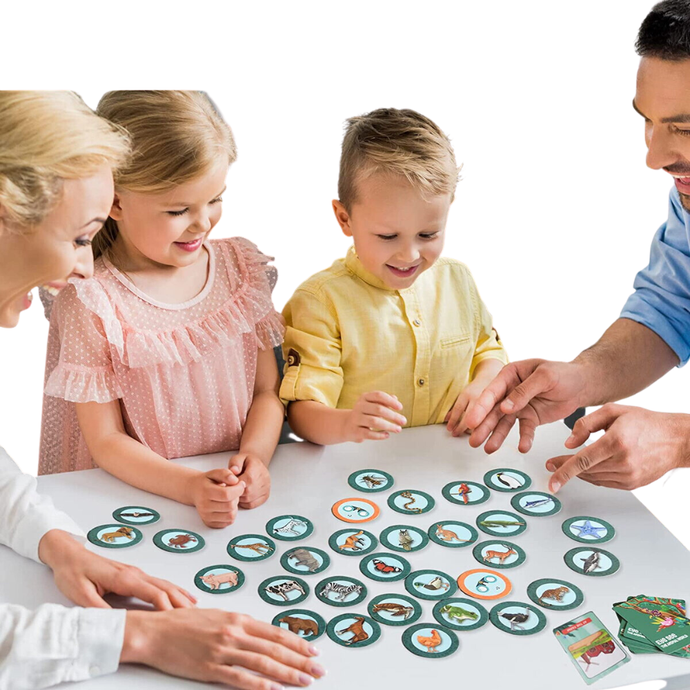 Regulile sunt ușor de înțeles, iar ritmul jocului îi implică rapid pe toți participanții. Se așază jetoanele cu animale cu fața în sus, se întoarce un card cu o caracteristică, iar jucătorii trebuie să găsească repede animalele potrivite. Este un joc educativ cu animale care încurajează învățarea prin asociere, reacția rapidă și joaca în familie sau cu prietenii.
