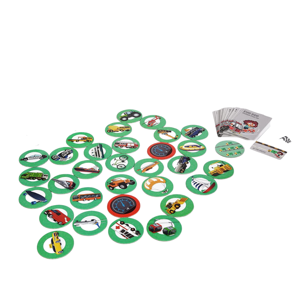 Mod de utilizare: asezati jetoanele cu vehicule cu fata in sus in centrul mesei, iar cardurile cu caracteristici separat, cu fata in jos. Intoarceti un card, iar jucatorii trebuie sa gaseasca rapid jetoanele potrivite. Primul jucator care aduna 5 carduri castiga.