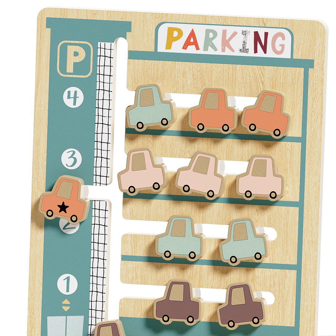 Jocul de logica Parcarea masinutelor este o alegere excelenta pentru copiii care iubesc masinutele si provocarile inteligente. Prin mutarea pieselor pe tabla, cei mici trebuie sa gaseasca locul potrivit pentru fiecare masina, respectand configuratiile de pe carduri. Acest joc educativ din lemn stimuleaza atentia, gandirea logica si coordonarea mana-ochi intr-un mod distractiv si prietenos.