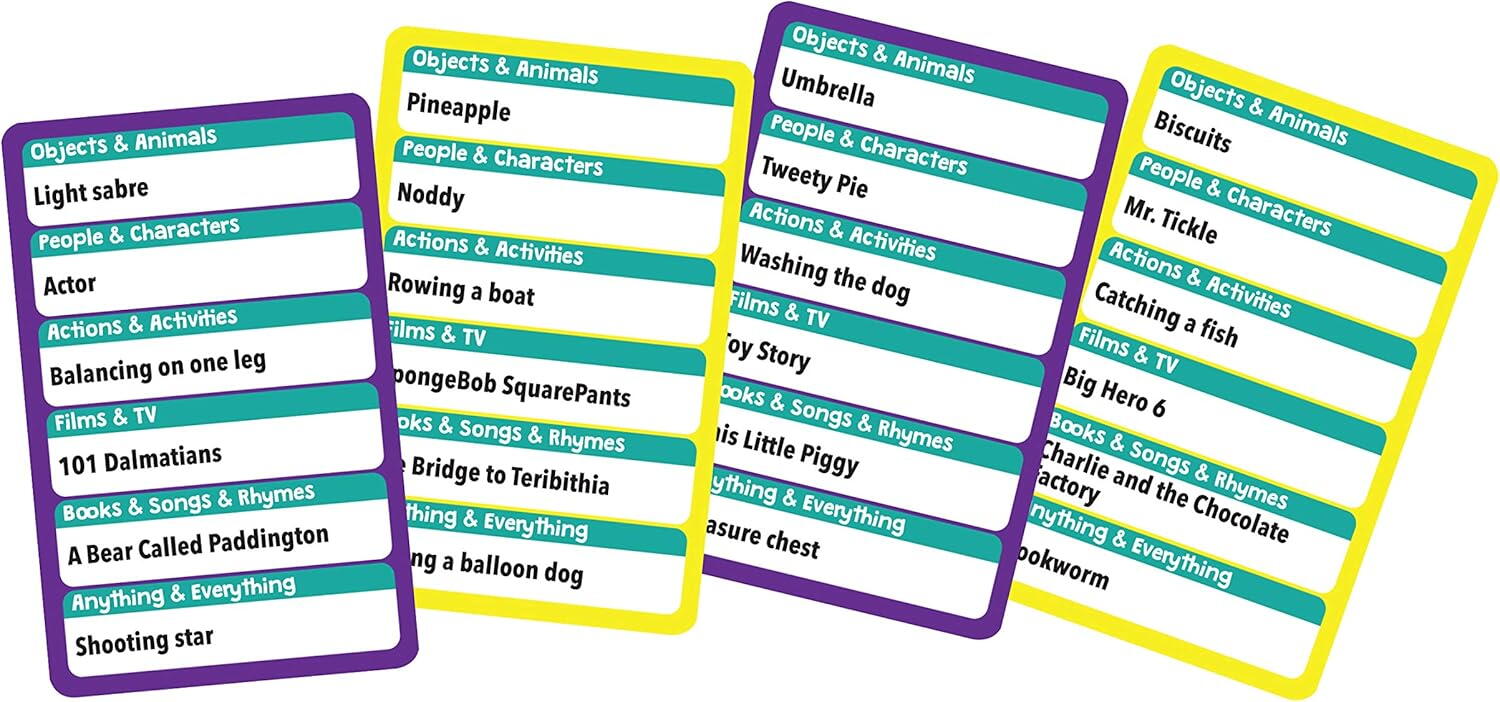 Joc de mima pentru copii 6+ cu carduri si 6 categorii distractive