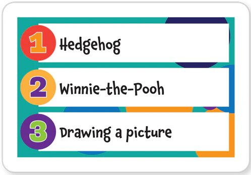 Regulile sunt ușor de înțeles: se aruncă zarul pentru a stabili categoria, se extrage un card, apoi copilul mimează fără să vorbească, iar ceilalți încearcă să ghicească înainte să se scurgă timpul din clepsidră. Este un joc educativ pentru copii care încurajează colaborarea și comunicarea într-un mod amuzant.