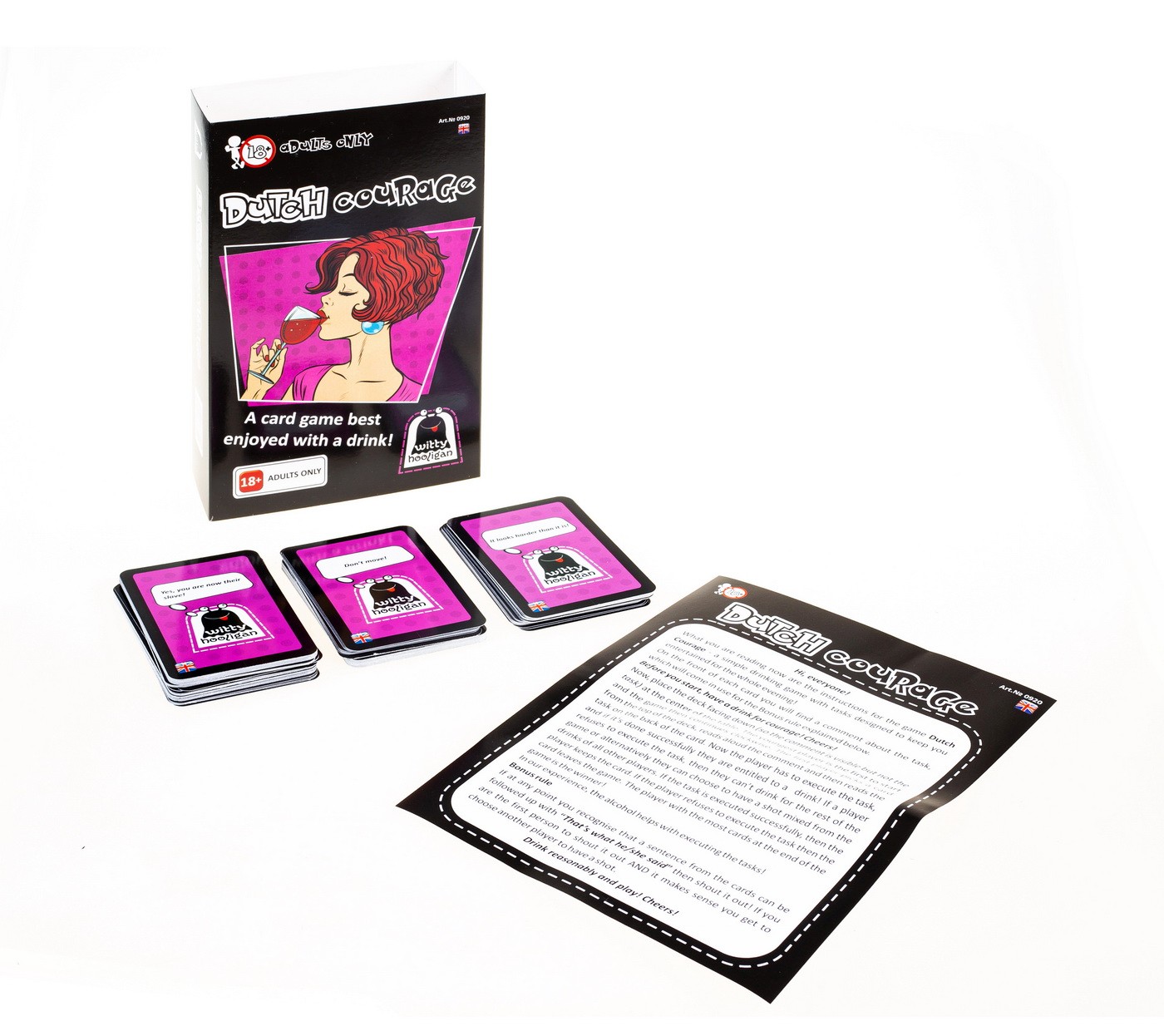 Jocul de petrecere Dutch Courage este alegerea perfectă pentru serile în care vrei distracție, provocări și multă voie bună alături de prieteni. Conceput pentru adulți, acest joc de cărți pentru petrecere include sarcini amuzante și îndrăznețe, iar fiecare rundă poate deveni memorabilă. Dacă o provocare este prea incomodă pentru a fi dusă la capăt, regula jocului oferă o alternativă curajoasă pentru continuarea distracției.