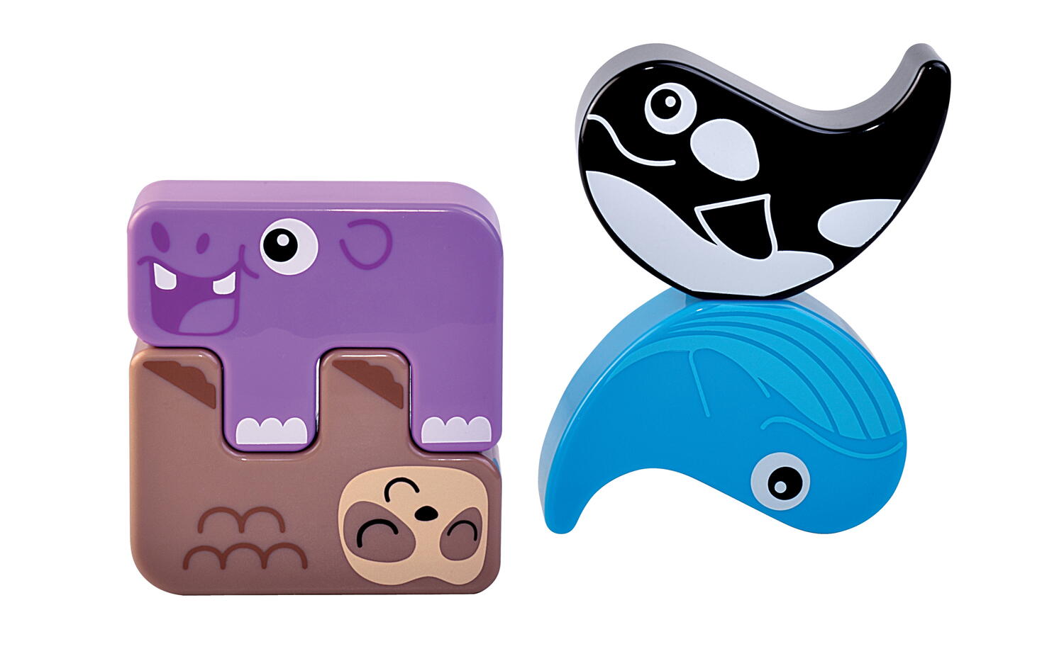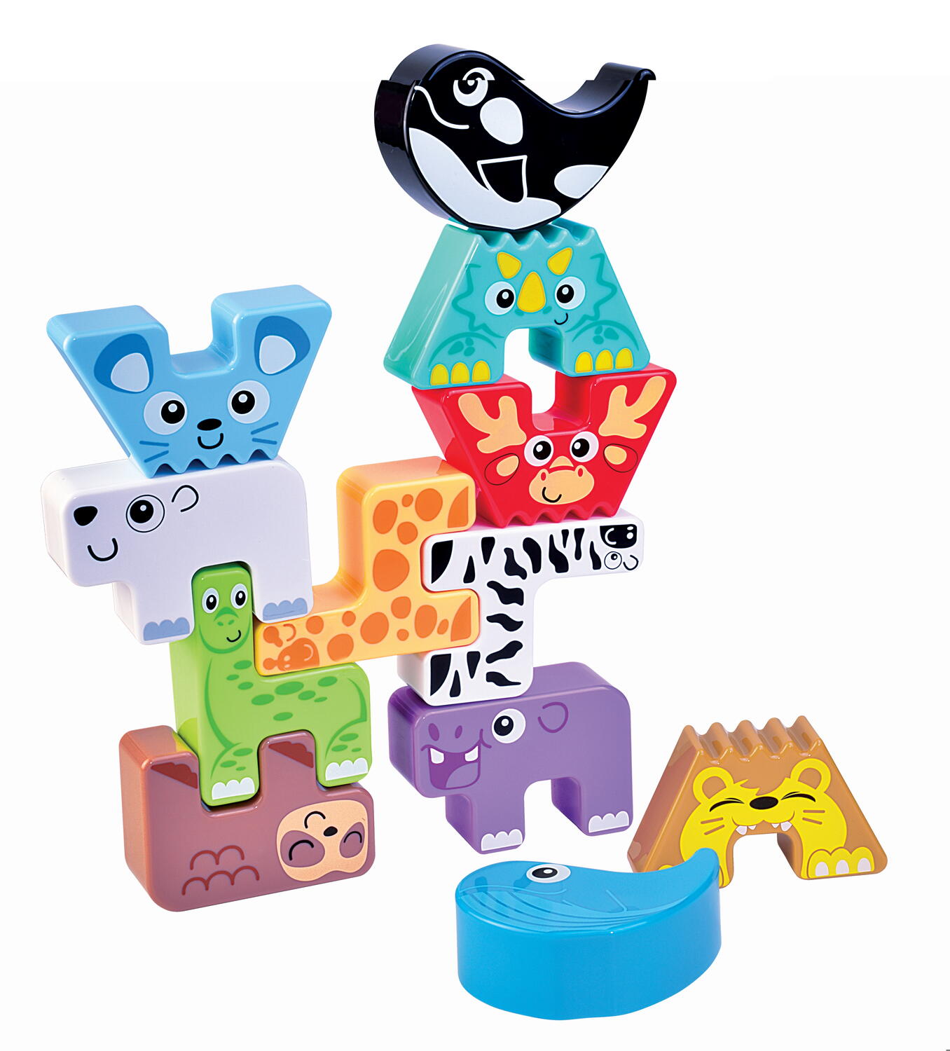 Copilul poate potrivi, roti si suprapune piesele pentru a crea diferite combinatii si turnulete cu animalute. Jocul este ideal pentru activitati de invatare timpurie, acasa sau in colectivitate, contribuind la dezvoltarea abilitatilor de asociere si manipulare.