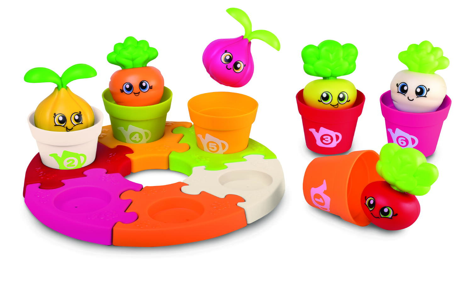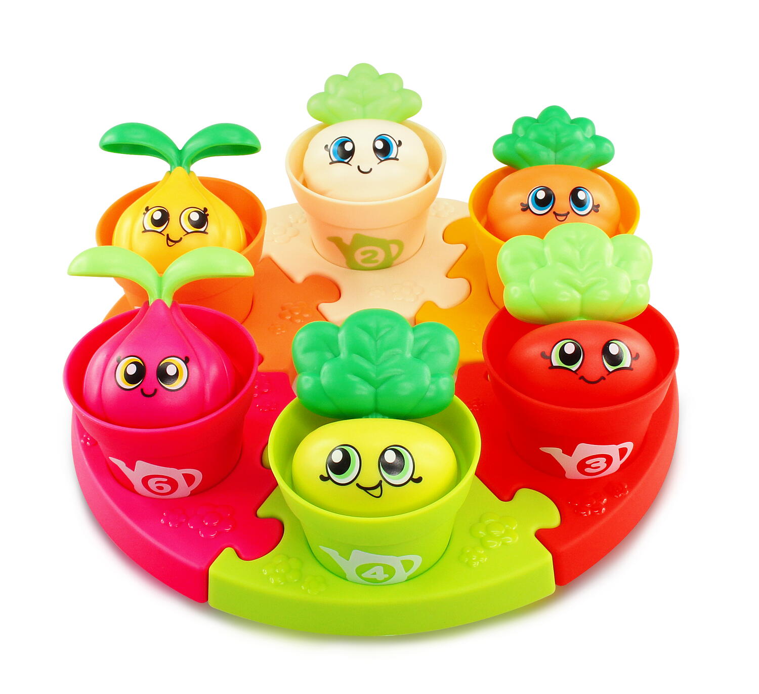 Descopera un joc de potrivire educativ plin de culoare, creat special pentru cei mici care invata prin joaca. Gradina vesela ii ajuta pe copii sa sorteze, sa recunoasca formele, culorile si cifrele, in timp ce isi dezvolta coordonarea si indemanarea. Ghivecele numerotate si legumele simpatice transforma fiecare sesiune de joaca intr-o activitate distractiva si utila.