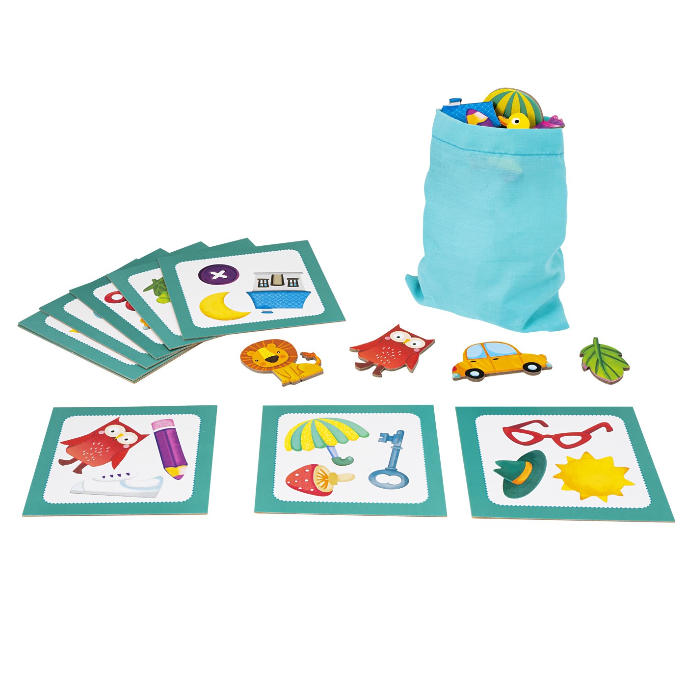 Utilizare: amestecati elementele, introduceti-le in punga de panza si lasati copilul sa ghiceasca obiectul extras sau atins, urmand regulile uneia dintre variantele de joc. Este un joc educativ potrivit pentru 1-6 jucatori, excelent pentru dezvoltarea abilitatilor prin joaca.
