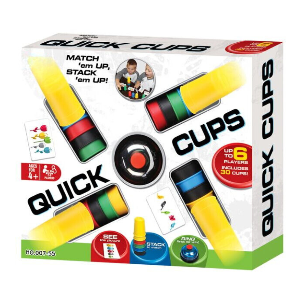 Jocul de societate Pahare rapide este alegerea potrivita pentru copiii care adora provocarile rapide si distractive. Cei mici trebuie sa reproduca ordinea corecta a culorilor sau a obiectelor de pe carduri, aliniind sau stivuind paharele cat mai repede. Este un joc educativ pentru copii care sustine dezvoltarea atentiei, a reflexelor si a coordonarii ochi-mana, intr-un mod interactiv si amuzant.