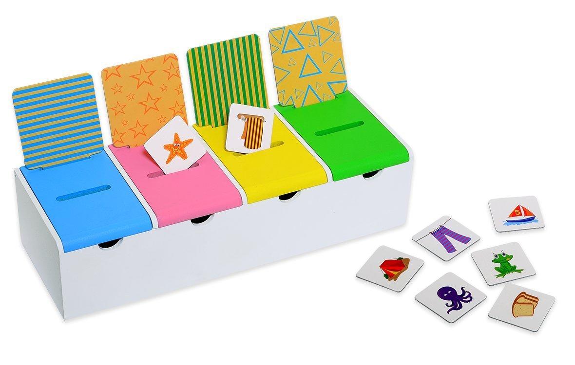 Prin potrivirea cartonașelor în cutia corectă, cei mici exersează sortarea și clasificarea, își dezvoltă atenția și învață să observe asemănări și diferențe. Jocul poate fi folosit atât acasă, cât și în grădiniță, fiind potrivit pentru 1 sau mai mulți jucători.