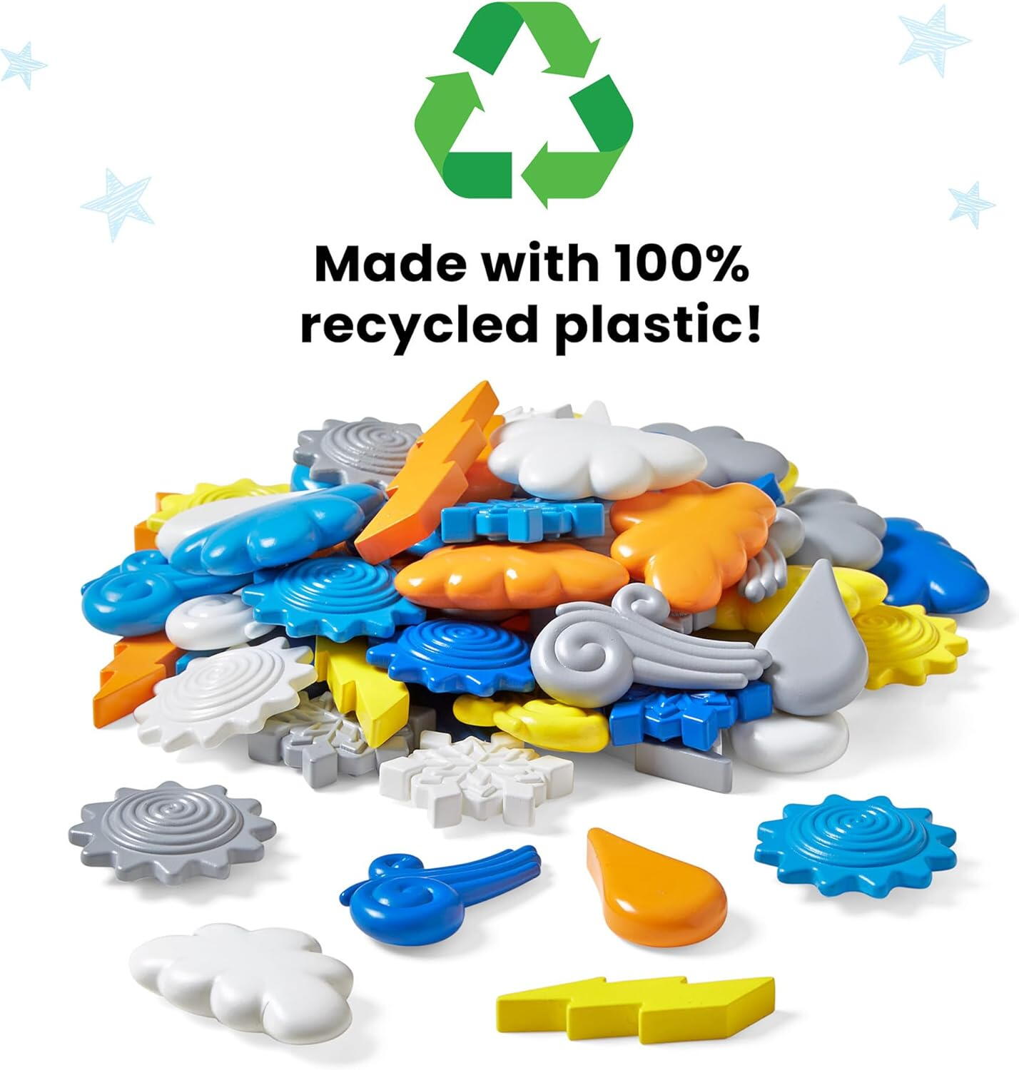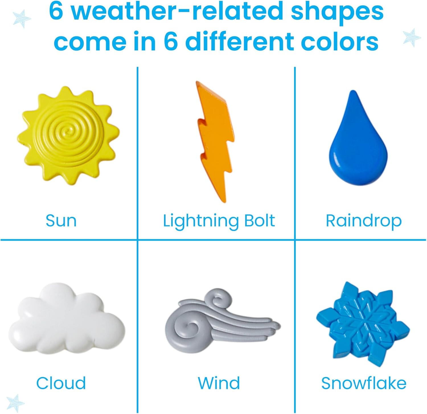 72 de figurine meteo in 6 forme diferite (soare, nor, fulger, picaturi de ploaie, vant si zapada)