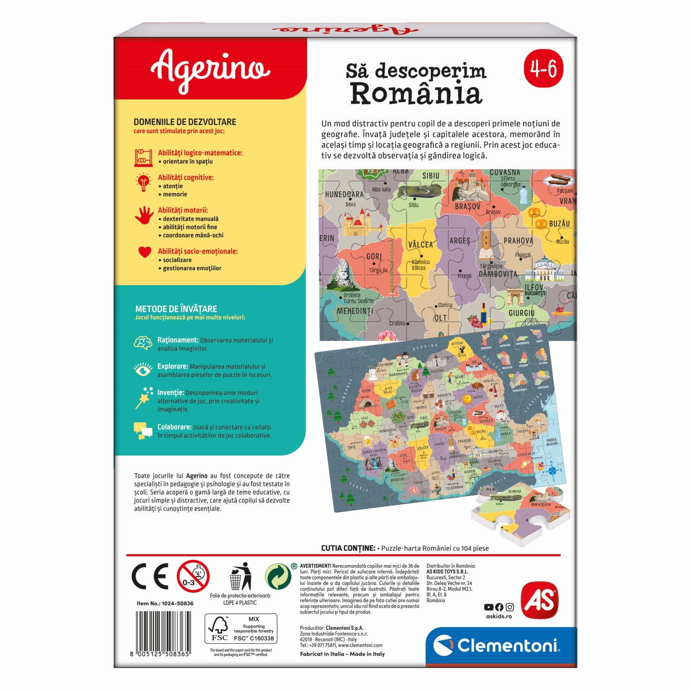 Joc educativ Agerino Sa descoperim Romania, puzzle geografie 4+ ani