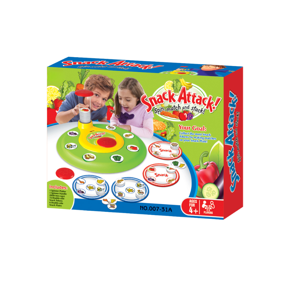 Mod de utilizare: fiecare jucator primeste o plansa-farfurie cu spatii pentru diferite gustari. In timpul jocului, participantii aleg jetoane cu alimente din zona centrala si incearca sa le potriveasca pe propria plansa. Anumite combinatii pot aduce bonusuri, iar castigatorul este jucatorul care completeaza primul farfuria sau obtine cel mai mare punctaj la final.