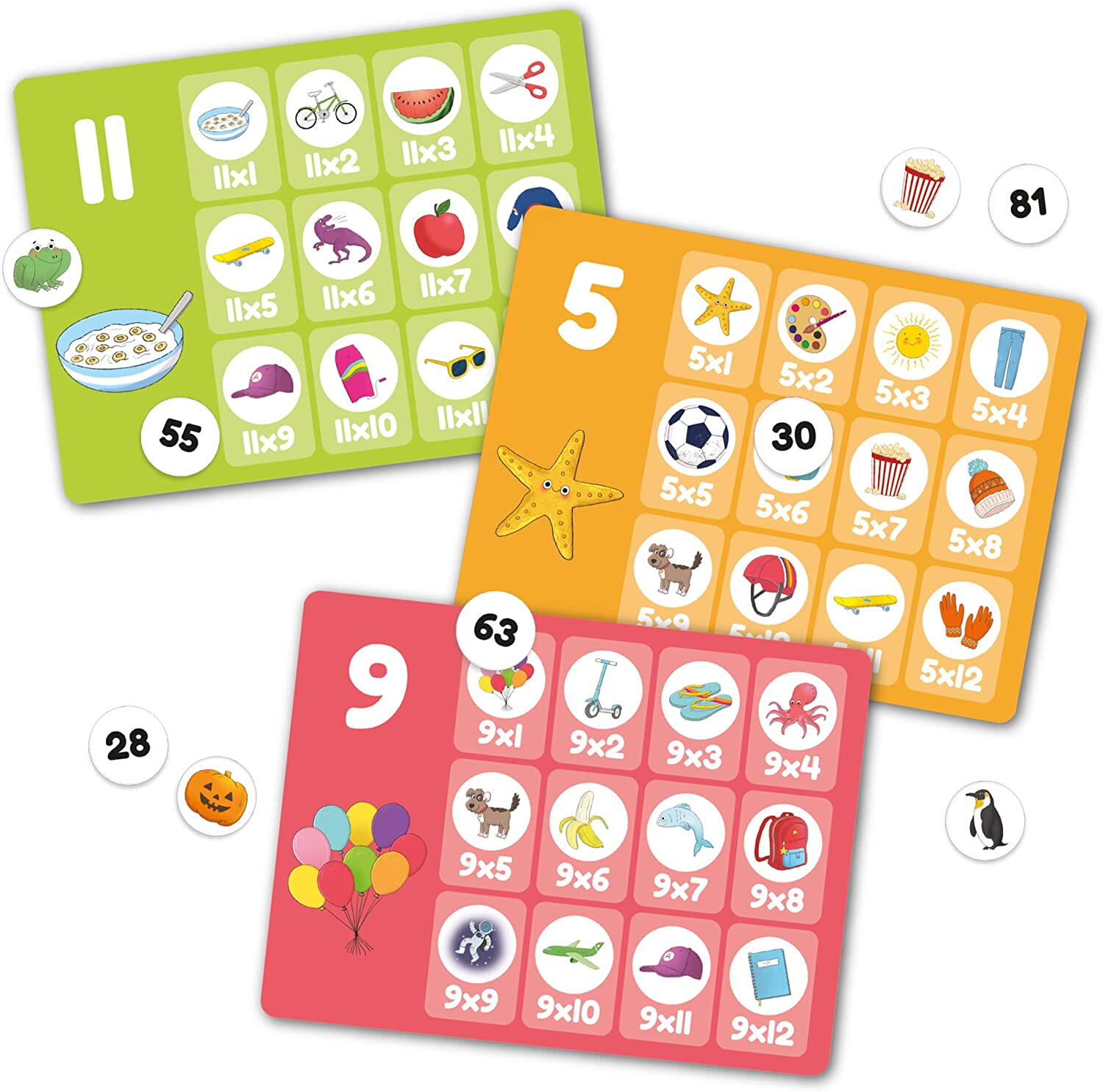 Transforma invatarea in joaca cu acest joc educativ pentru tabla inmultirii de la Galt, conceput pentru copiii de peste 7 ani. Setul ii ajuta sa exerseze inmultirea de la 1 la 12 intr-un mod vizual, interactiv si usor de inteles, fiind potrivit atat pentru acasa, cat si pentru activitati la scoala. Copiii aleg jetonul cu raspunsul corect si completeaza fiecare operatie, iar formatul fata-verso le permite sa se verifice singuri.