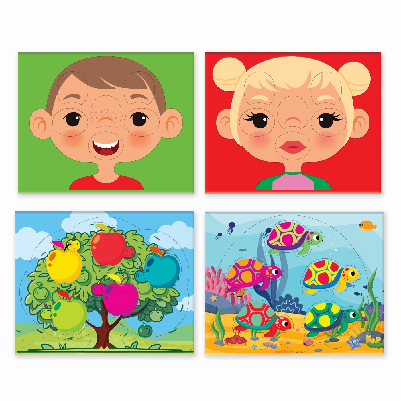 Potriveste formele este un joc format din 4 tablouri de bord mari si 22 de carti ilustrate. Fiecare tablou este format din 5 adancituri care potrivesc 5 carti cu obiecte de aceeasi forma. Copiii pot incepe sa joace pur si simplu observand imaginile de pe cartonase si plasandu-le pe tabloul de bord acolo unde se potrivesc. Pe masura ce se familiarizeaza cu jocul, se pot distra cu prietenii si familia lor jucand un joc de Bingo.