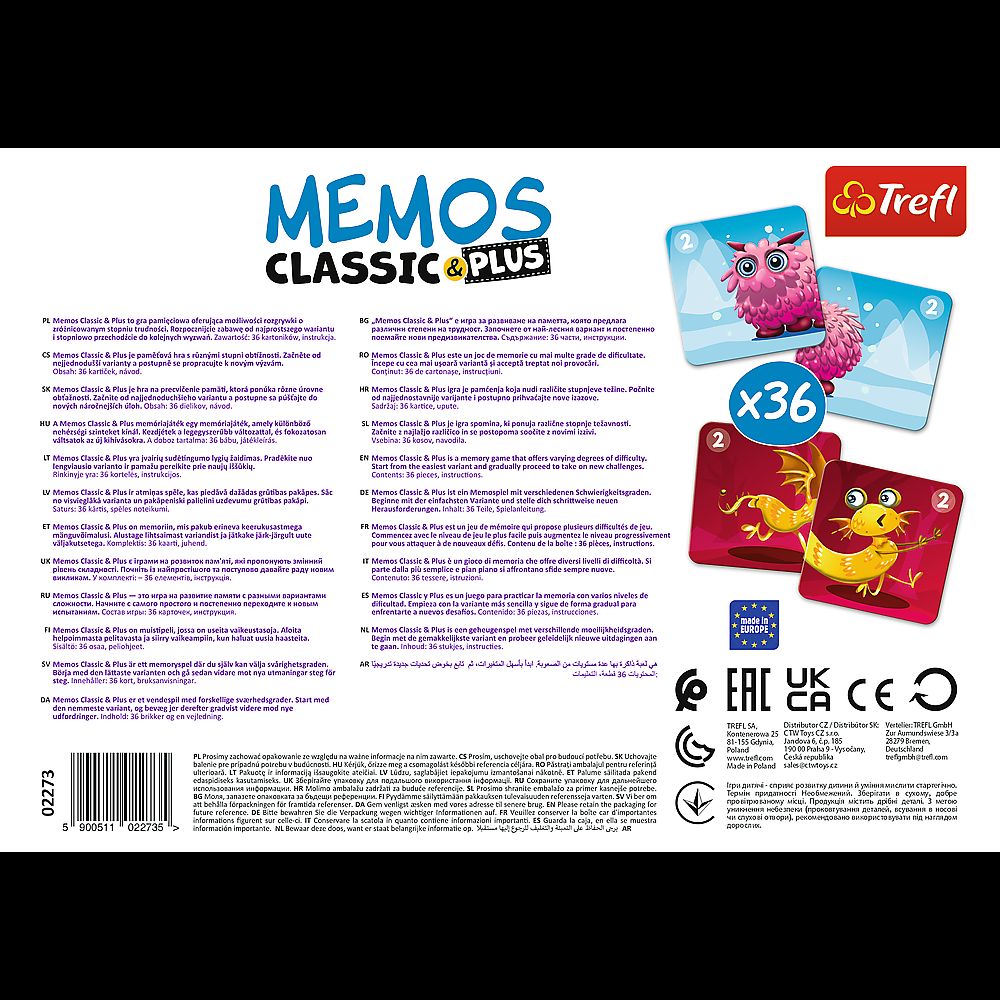 Specificatii JOC MEMOS CLASSIC PLUS DRAGUTII MONSTRI