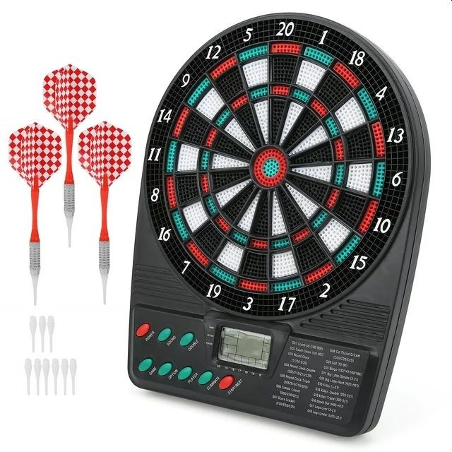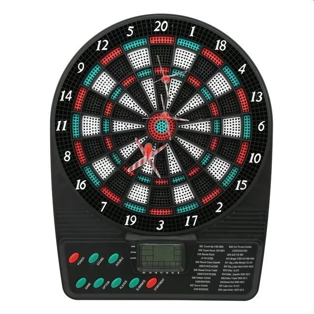 Jocul Darts este un joc clasic de sageti cunoscut in intreaga lume. Scopul acestui joc este de a obtine cat mai multe puncte posibile prin aruncarea cu cageti. Acesta poate fi jucat de pana la 8 persoane, fiind o alegere excelenta pentru jocul in familie sau cu prietenii, oferind multe ore de distractie. De asemenea, puteti alege intre cele 159 de moduri diferite de joc. Acesta poate fi atarnat pe perete datorita orificiului special de pe carcasa din spate, sau poate fi asezat pe masa (dispune de un picior detasabil).