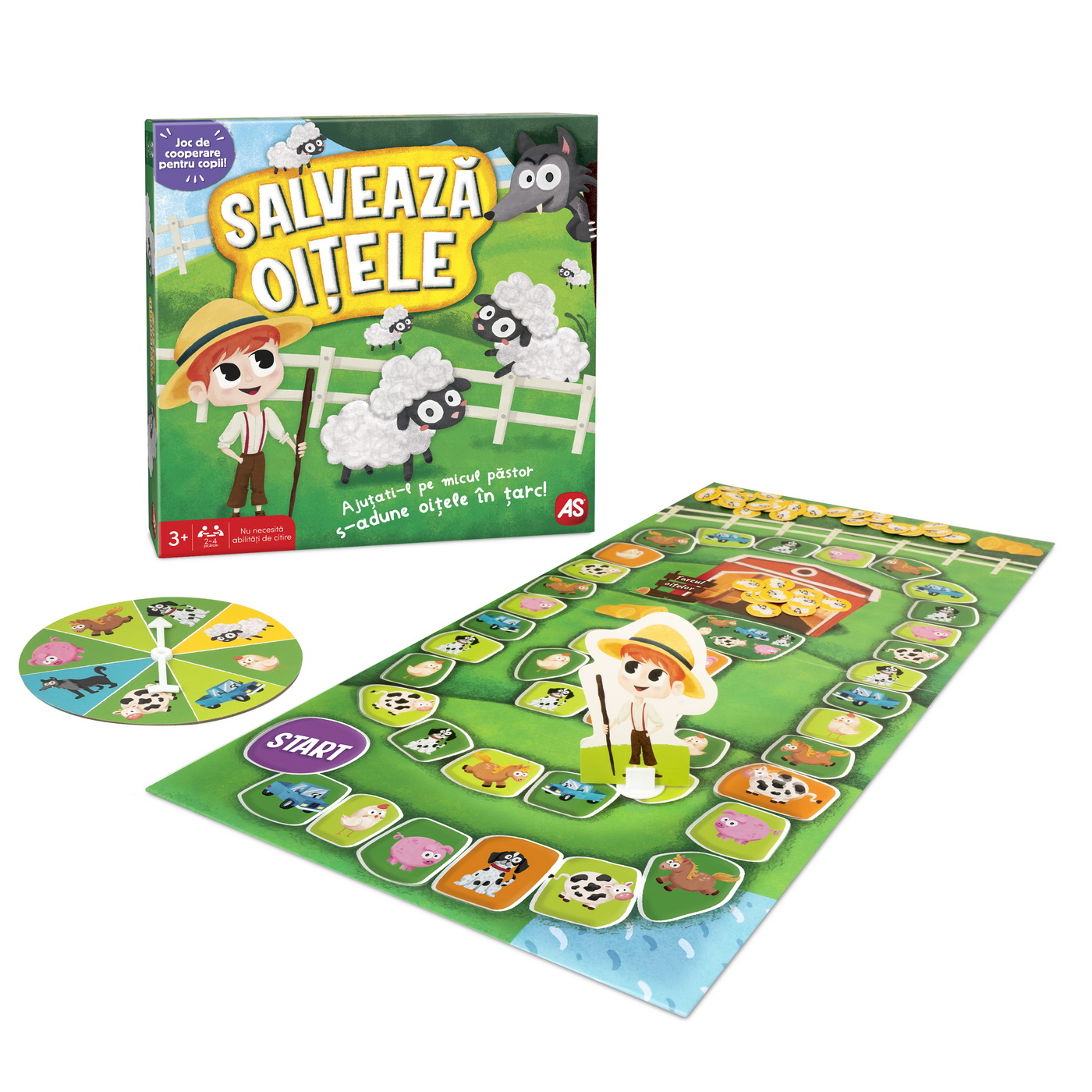 Cine a spus ca toate jocurile vor fi competitive? Salvati oitele este un joc de colaborare, in care toti jucatorii lucreaza impreuna pentru a salva oitele si a le aduce pe toate in siguranta acasa. Rotiti roata si gasiti pe tabla aceeasi imagine ca imaginea indicata de sageata. Numarati pozitiile pe care le-ati avansat pe tabla - acesta este numarul de oi pe care le-ati salvat si pe care le puteti muta in siguranta in casa lor. Dar atentie, daca ciobanasul ajunge acasa si mai sunt oite de salvat, jocul s-a terminat si trebuie sa o iei de la capat! Castigi doar daca toate oitele sunt in casa lor cand ajunge si ciobanasul acasa. Colaborati, lucrati impreuna cu ceilalti si asigurati-va ca salvati toate oitele!Valorile educationale ale jocului invatarea numerelor si numaratorii, empatie, colaborare, spirit de echipa.Contine 1 roata si sageata, 1 ciobanas cu baza de plastic, 1 tabla de joc, 40 de jetoane mici &bdquooite&rdquo. Varsta recomandata 3+ ani.