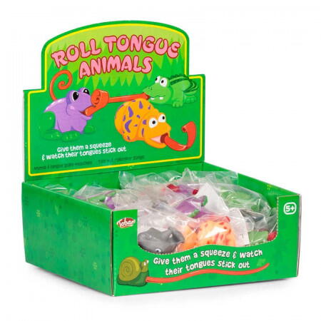 Jucarie antistres animalut cu limba extensibila, moale, 6 cm