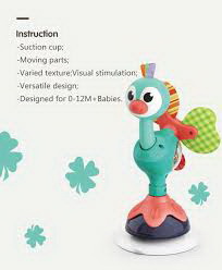 Mod de utilizare: fixati jucaria pe o suprafata curata si plana, apoi apasati baza pentru prindere. Lasati copilul sa exploreze in siguranta functiile mobile ale jucariei, sub supravegherea unui adult.