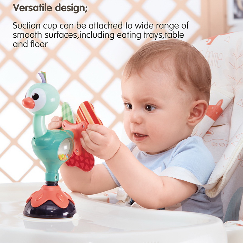 Jucarie bebe cu ventuza, model Paun multicolor, pentru 6 luni+
