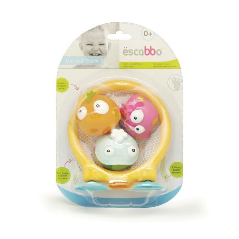 Transforma baita intr-un moment plin de rasete cu aceasta jucarie de baie ESCABBO, prevazuta cu cos de baschet si 3 pestisori colorati. Conceputa pentru manutele mici, jucaria incurajeaza joaca activa, dezvoltarea coordonarii mana-ochi si recunoasterea formelor si culorilor. Pestisorii plutesc, pot fi umpluti cu apa si pot stropi, oferind si mai multa distractie in timpul baii.