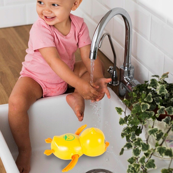 Cu o cheita rotativa speciala, ratusca poate inota pe apa, aducand un plus de interactivitate si transformand baita intr-o adevarata aventura acvatica. Mecanismul simplu si sigur al cheitei face ca ratusca sa se miste pe apa, stimuland curiozitatea si dezvoltarea abilitatilor motorii ale copiilor. Culorile vesele si designul atragator fac din aceasta jucarie un companion de joaca perfect.