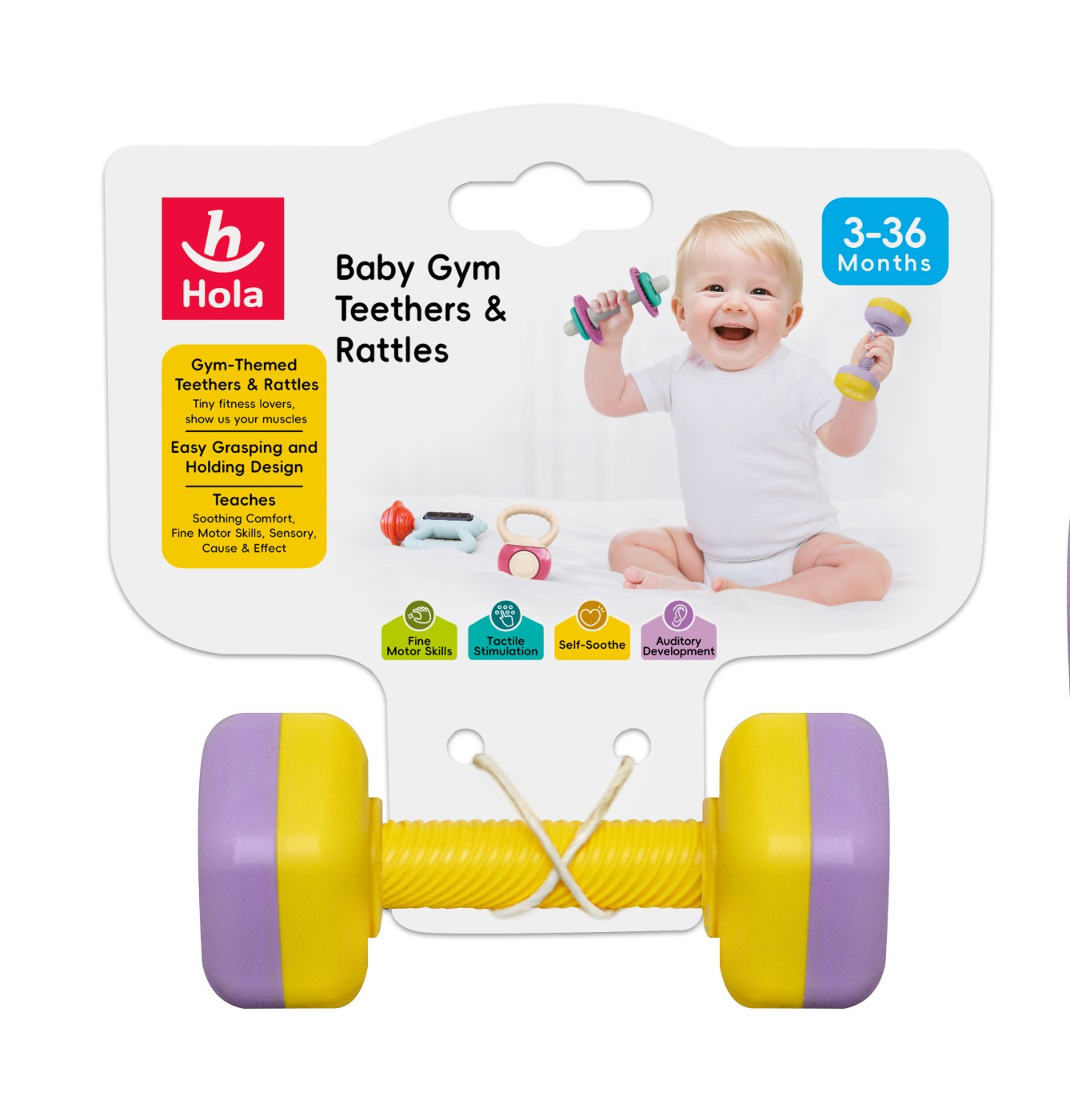 Mod de utilizare: oferiți jucăria bebelușului pentru a o prinde, agita și mesteca sub supravegherea unui adult. Poate fi folosită în rutina zilnică de joacă pentru calmare, distracție și dezvoltare timpurie.