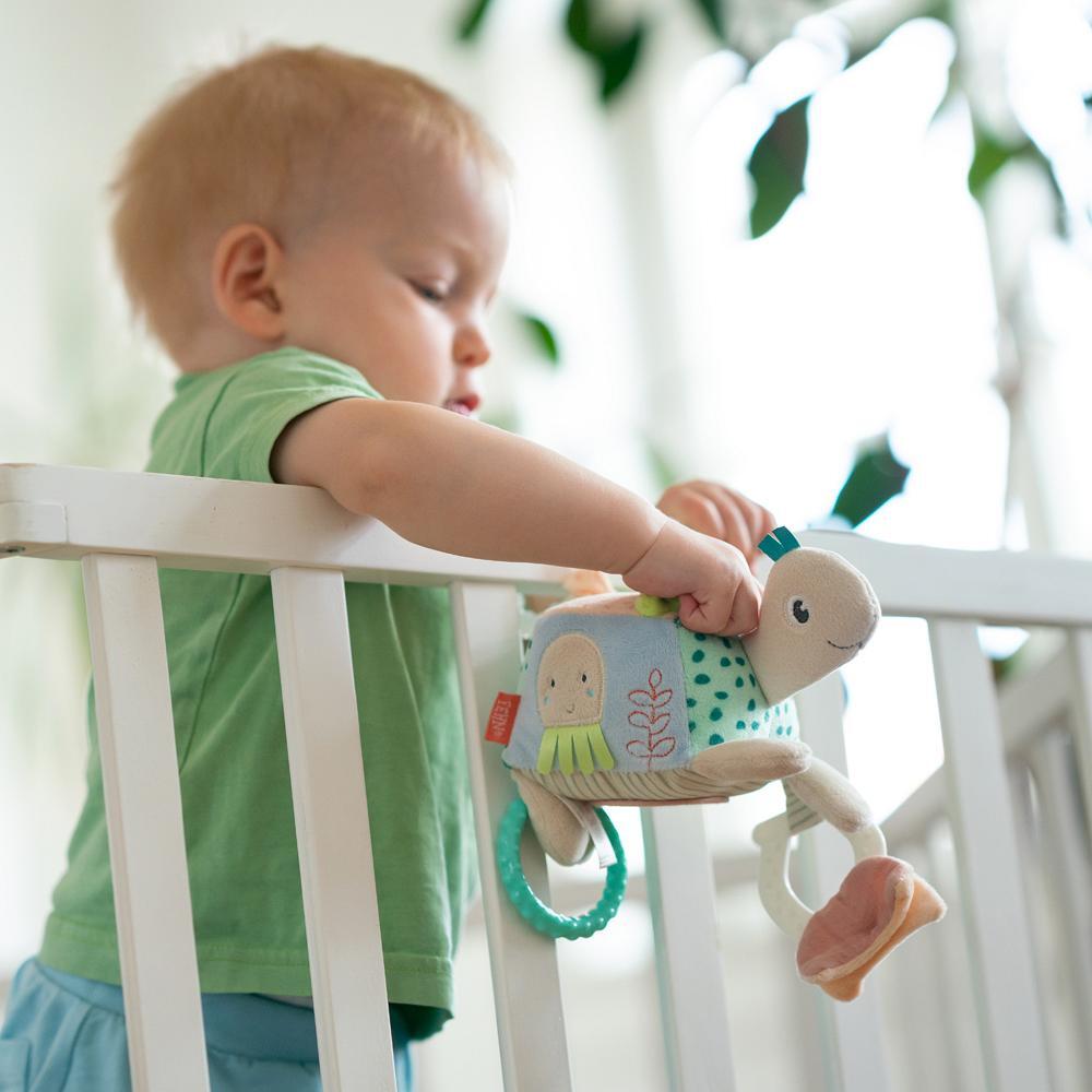 O alegere minunata pentru primele luni de viata, aceasta jucarie de dexteritate pentru bebelusi in forma de testoasa este creata pentru a incuraja joaca activa, explorarea si dezvoltarea senzoriala. Cu texturi diferite, culori placute, zornaitoare, oglinda si inel pentru dentitie, jucaria capteaza atentia celui mic si il ajuta sa isi exerseze coordonarea ochi-mana intr-un mod natural si distractiv.