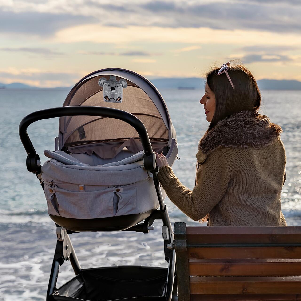 Glow-ul discret in nuanta alb-galben cald ofera orientare pe timpul noptii fara sa deranjeze somnul, iar melodiile si sunetele naturii creeaza o atmosfera placuta pentru rutina de seara. Datorita baretei pentru prindere, koala poate fi agatata cu usurinta la patut, carucior sau scaun auto.