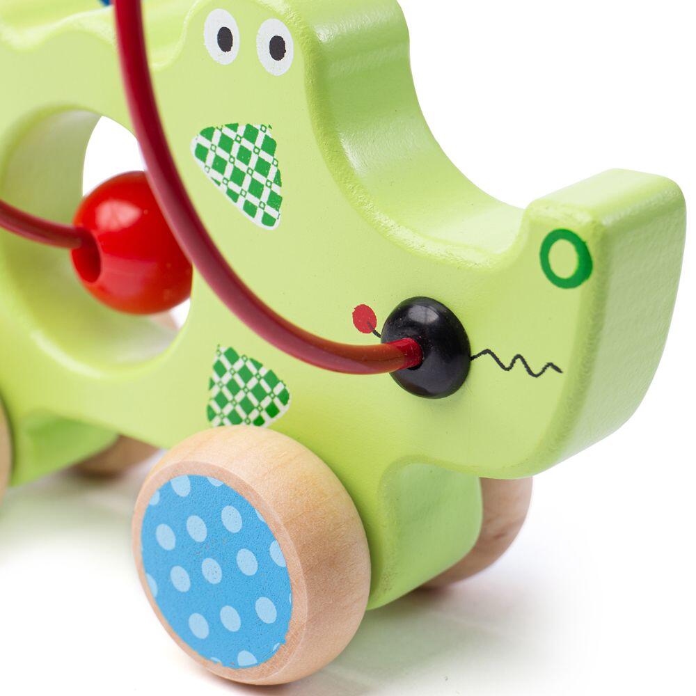 Jucărie din lemn de dexteritate Crocodil cu bile și roți, 1 an+