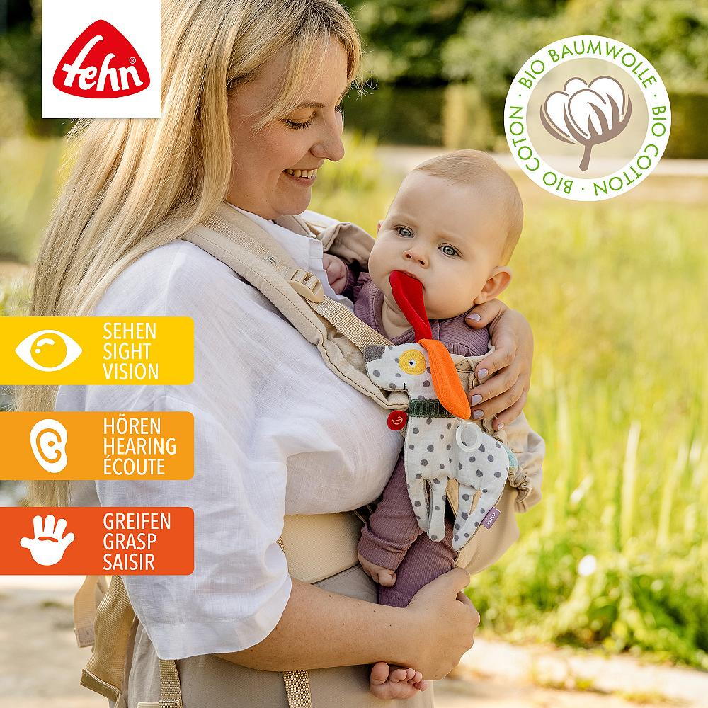Jucaria fosnitoare pentru bebelusi Catelus NATUR este un companion delicat si prietenos, creat special pentru micii exploratori inca din primele zile de viata. Cu o forma usor de apucat, materiale placute la atingere si efect sonor fosnitor, aceasta jucarie senzoriala ajuta la stimularea curiozitatii, a reflexului de prindere si a coordonarii mana-ochi.