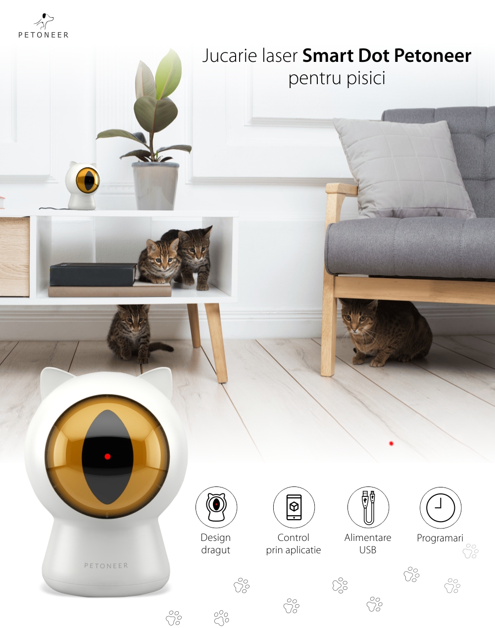 Jucarie inteligenta pentru pisici Petoneer Smart Dot, Control aplicatie, Programare, Alimentare USB SmartElectro IntelligentHouse