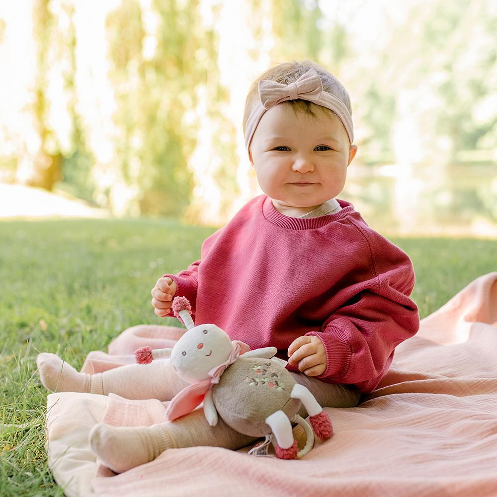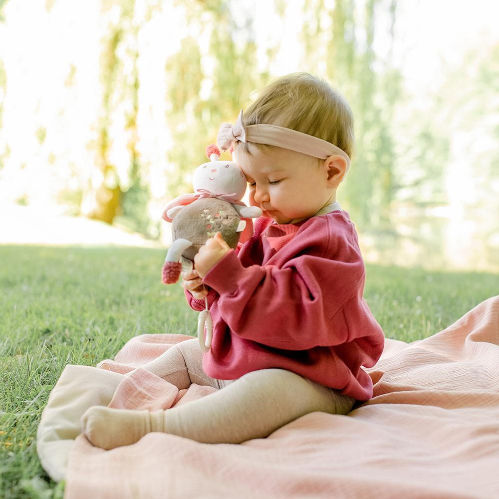 - Stimulează simțurile prin textură moale și sunete plăcute
