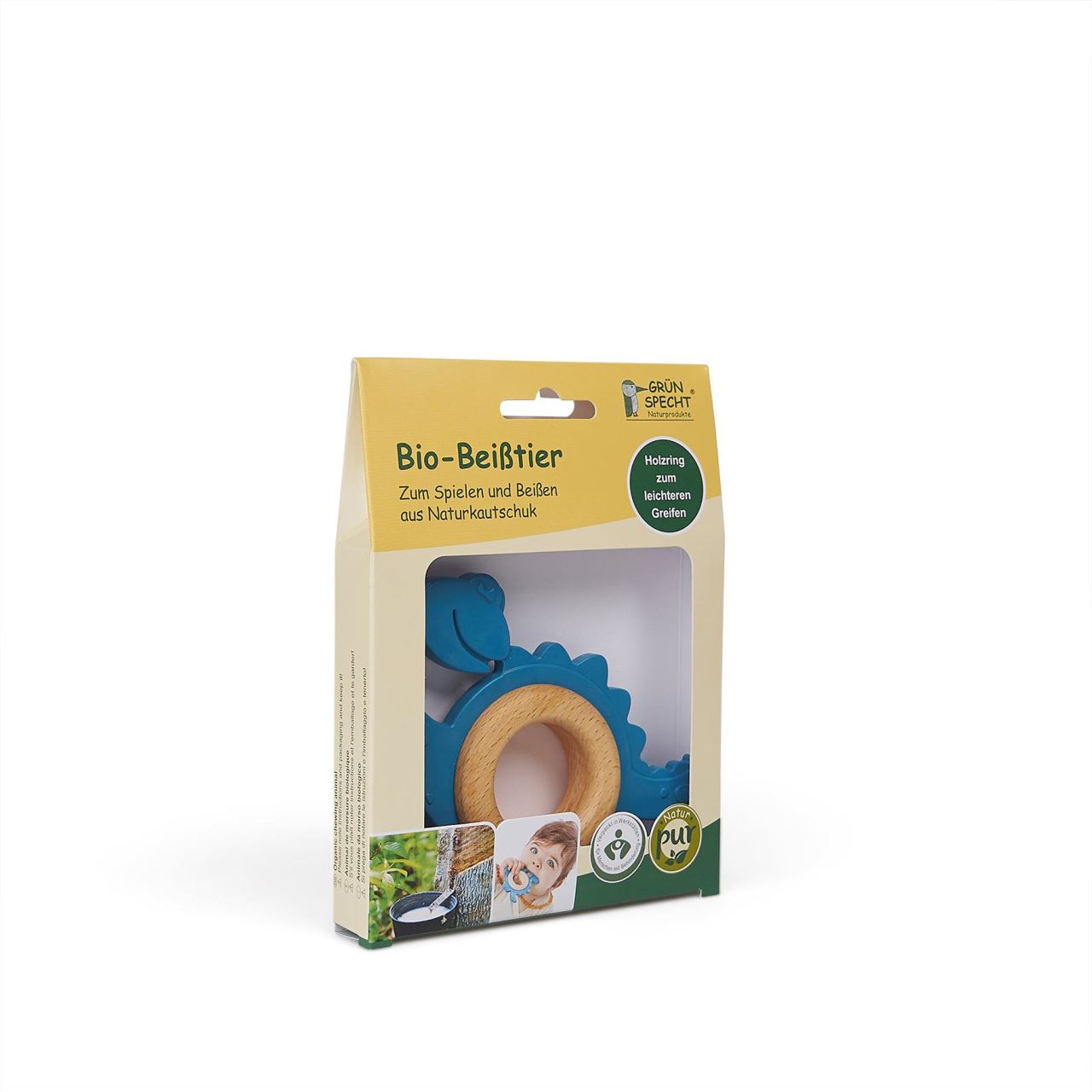 Inelul interior din lemn oferă o prindere confortabilă și susține dezvoltarea coordonării mână-ochi și a simțului tactil. În același timp, forma atractivă de dinozaur stârnește curiozitatea bebelușului și încurajează joaca senzorială încă din primele luni.