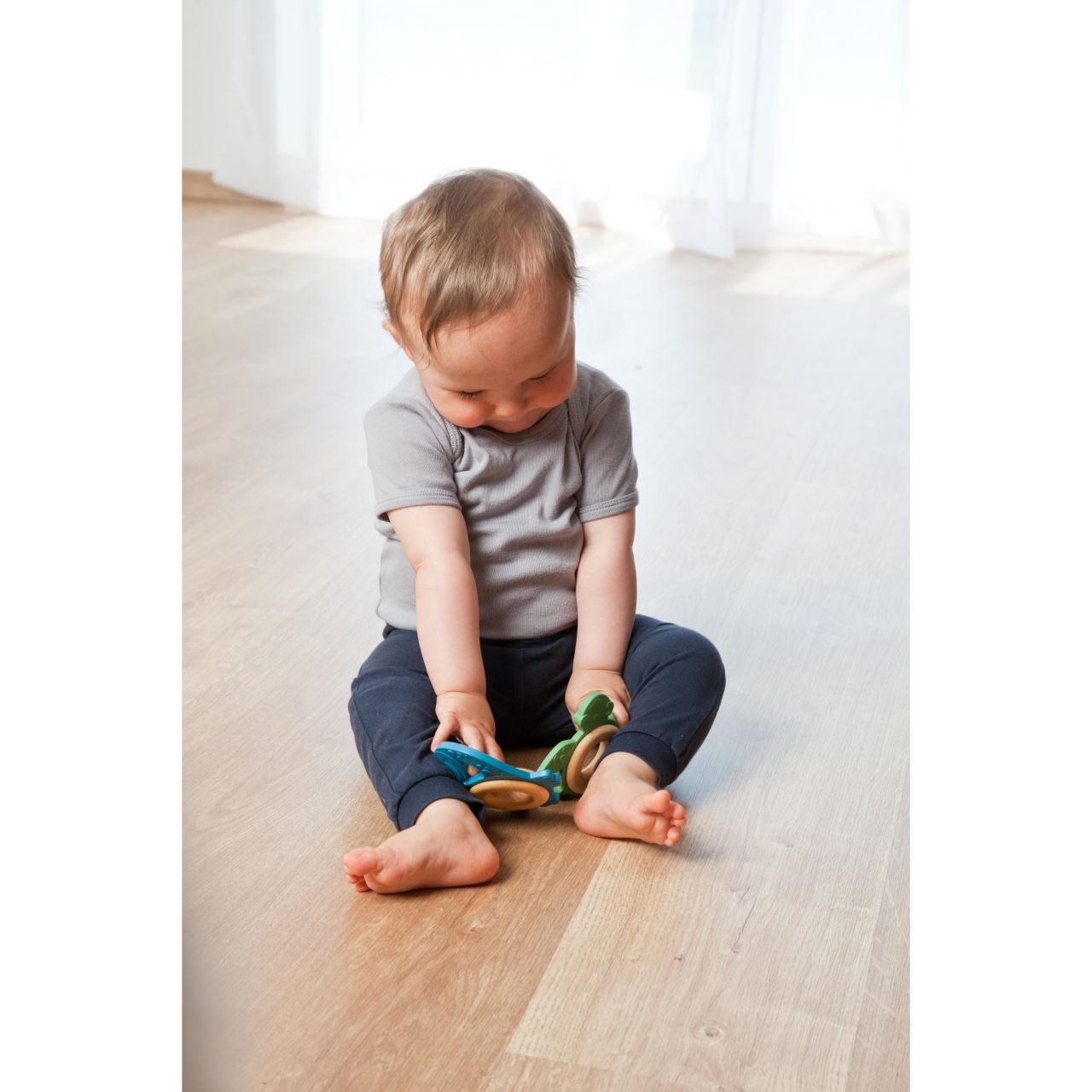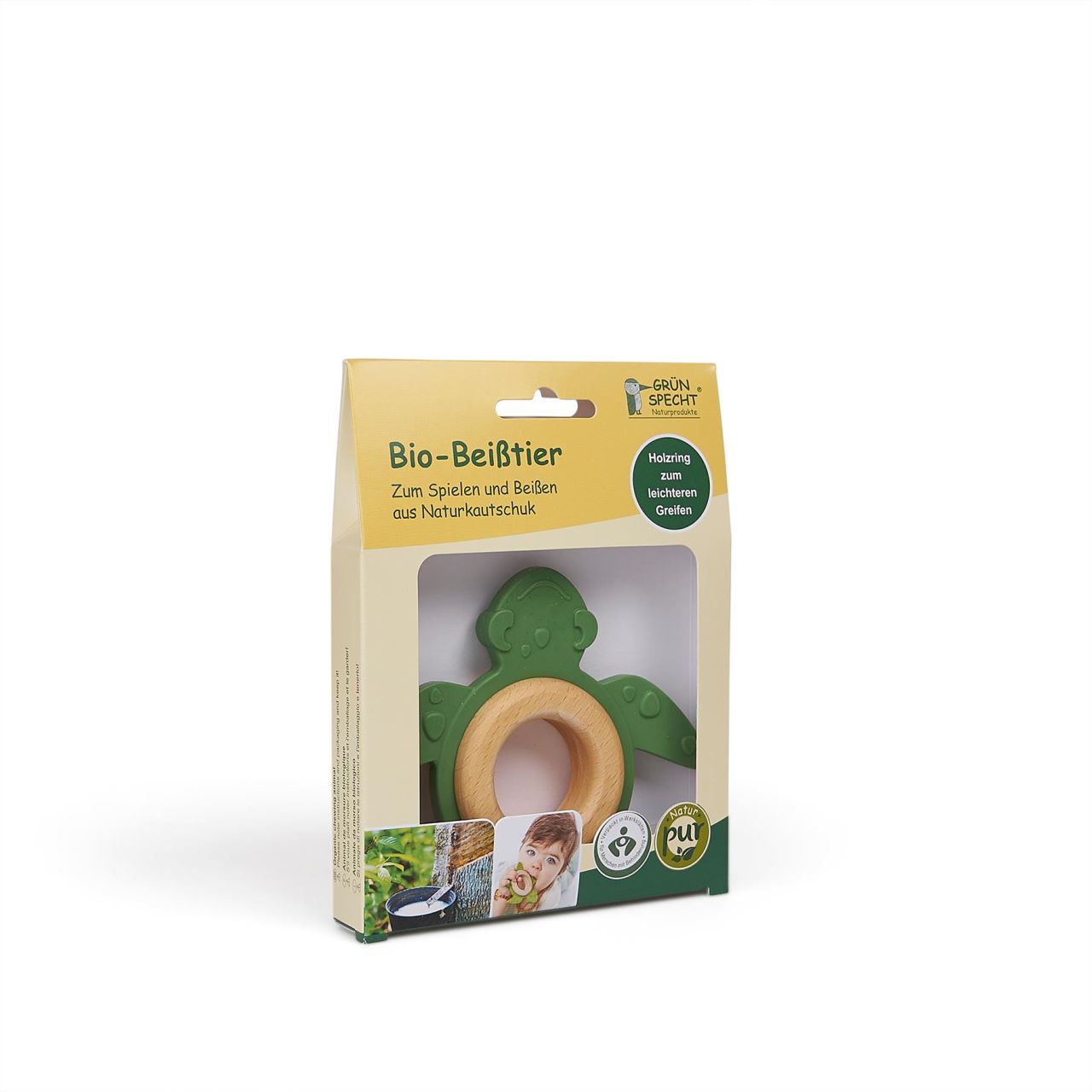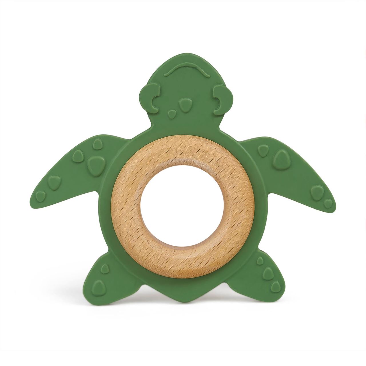 Jucăria pentru dentiție în formă de broască țestoasă este creată special pentru bebelușii care explorează lumea prin atingere, joacă și ros. Realizată din cauciuc natural și prevăzută cu un inel din lemn, aceasta ajută la calmarea disconfortului din perioada dentiției și susține dezvoltarea prinderii.