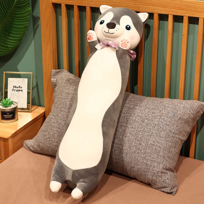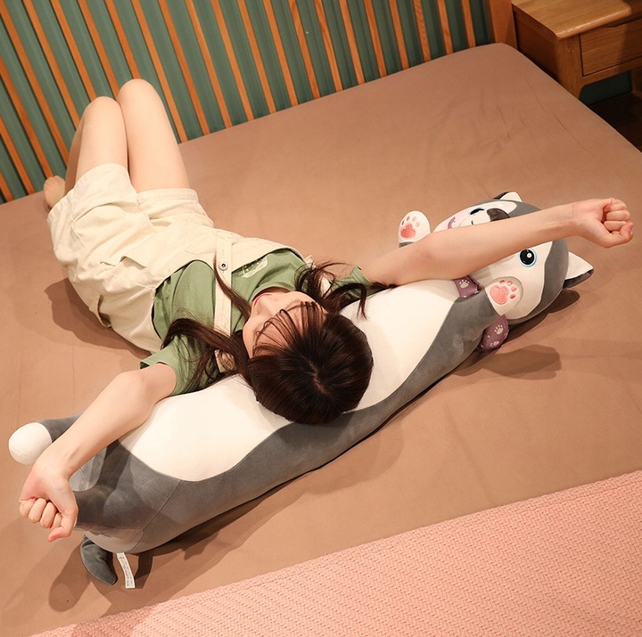 Jucarie pisica plus lunga, tip perna, lavabila, umplutura hipoalergenica, pentru copii si adulti, 70 cm, gri Household NewTrend