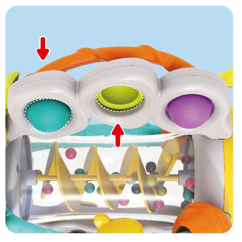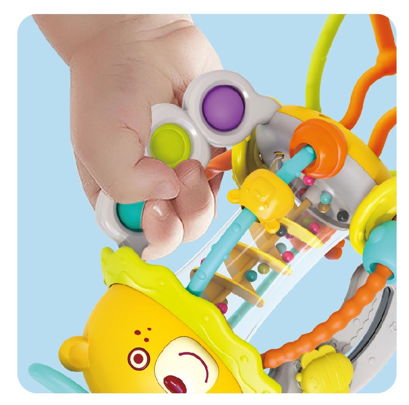 Oferă-i celui mic o experiență de joacă distractivă și educativă cu această jucărie senzorială pentru bebe, creată special pentru mânuțele curioase. Prin mișcări de scuturare, tragere, apăsare și rotire, copilul își dezvoltă coordonarea mână-ochi, motricitatea fină și percepția senzorială. Designul multicolor și elementele mobile cu sunete de zdrăngănit transformă fiecare moment de joacă într-o activitate captivantă.