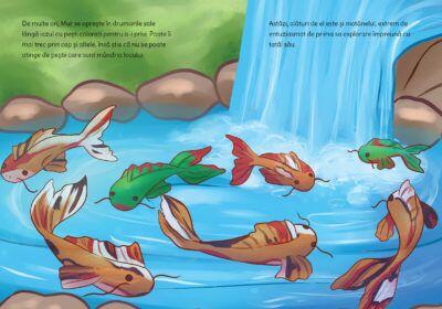 Jup, un pisoi de soi, Volumul IX - Un salt norocos este o carte pentru copii plina de farmec, aventura si emotie, perfecta pentru micii cititori cu varste intre 2 si 6 ani. In aceasta poveste, simpaticul Jup ajunge pe marginea unui iaz cu pesti colorati, unde are parte de o intalnire surprinzatoare, o sperietura zdravana si, la final, de o lectie frumoasa despre curaj si acceptarea propriei identitati.