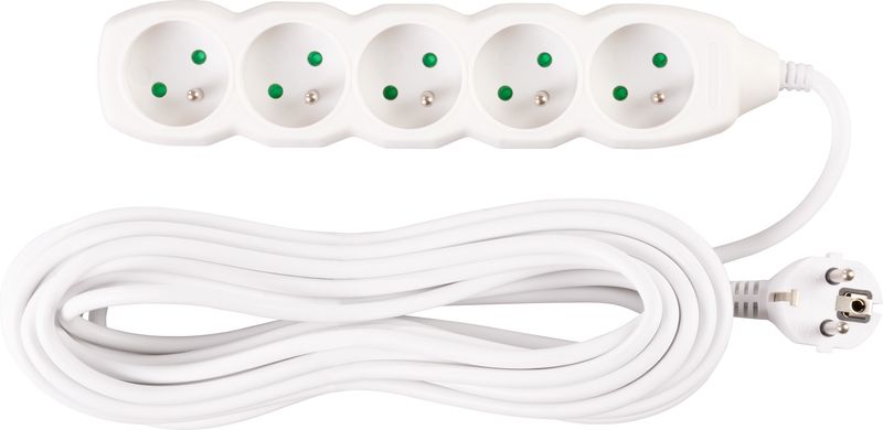 Praktický predlžovací kábel DG-F805B v bielej farbe zabezpečí prívod elektrickej energie až do dĺžky 10 metrov. Svoje využitie nájde v kanceláriách, ale aj v domácnostiach. Vďaka 5 zásuvkám umožňuje pripojenie viacero zariadení naraz.