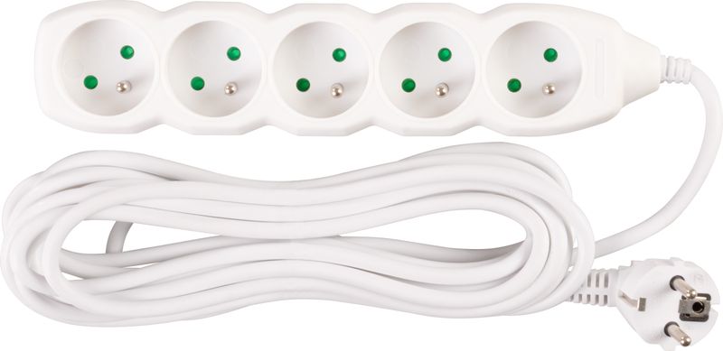 Praktický predlžovací kábel DG-F805B v bielej farbe zabezpečí prívod elektrickej energie až do dĺžky 5 metrov. Svoje využitie nájde v kanceláriách, ale aj v domácnostiach. Vďaka 5 zásuvkám umožňuje pripojenie viacero zariadení naraz.