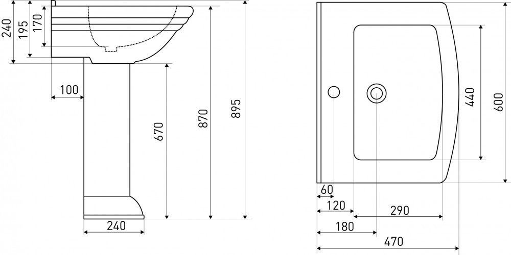 Lavoar ceramic Kleopatra 13, cu piedestal