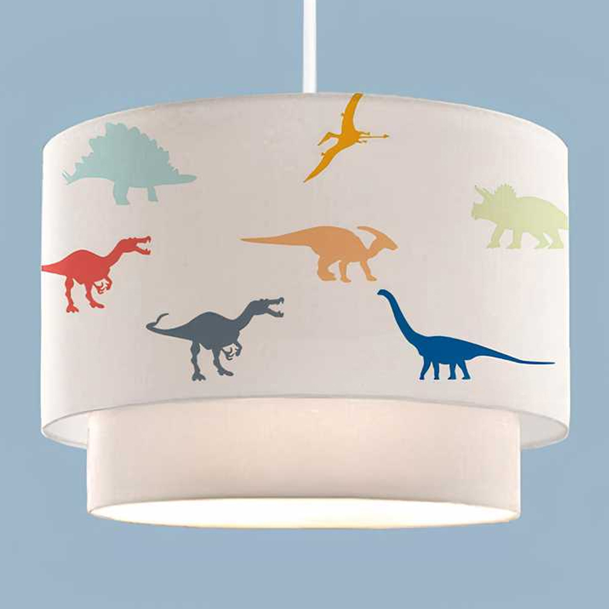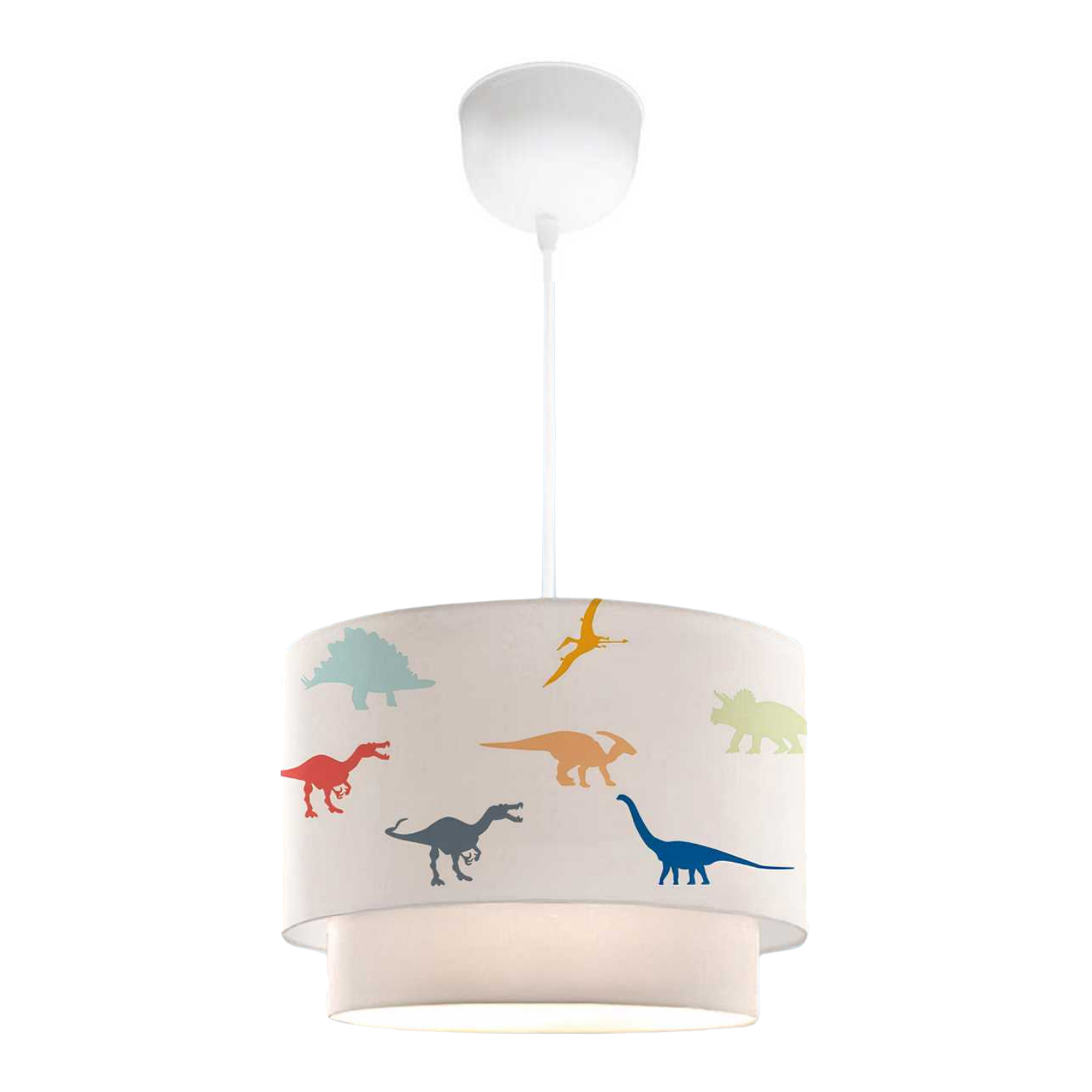 Kinder-Hängeleuchte Lurgan mit kleinen bunten Dinos-Motiv Weiß [lux.pro]
