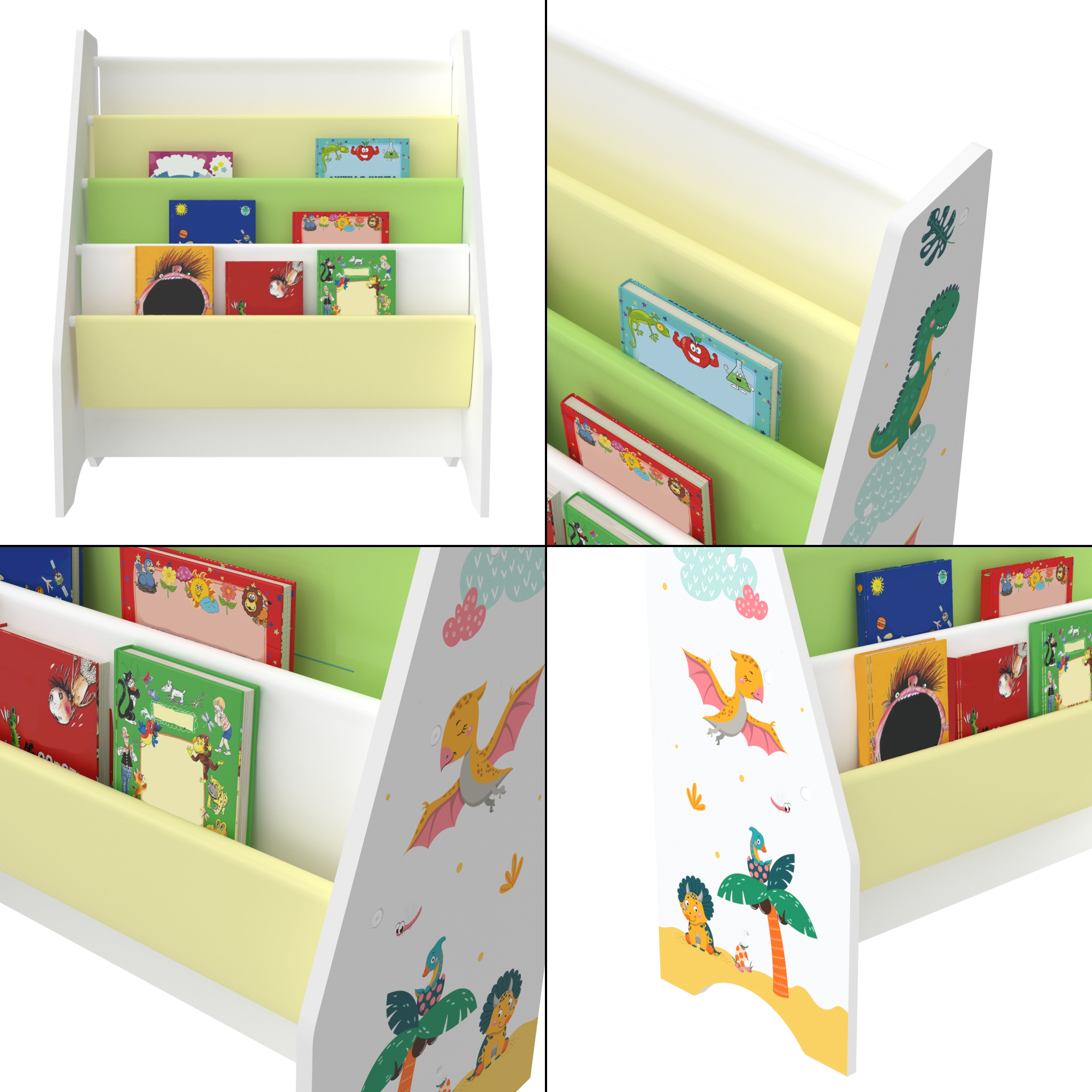 Kinderregal Fisterra Dinosaurier-Motiv Weiß / Grün / Gelb [en.casa]