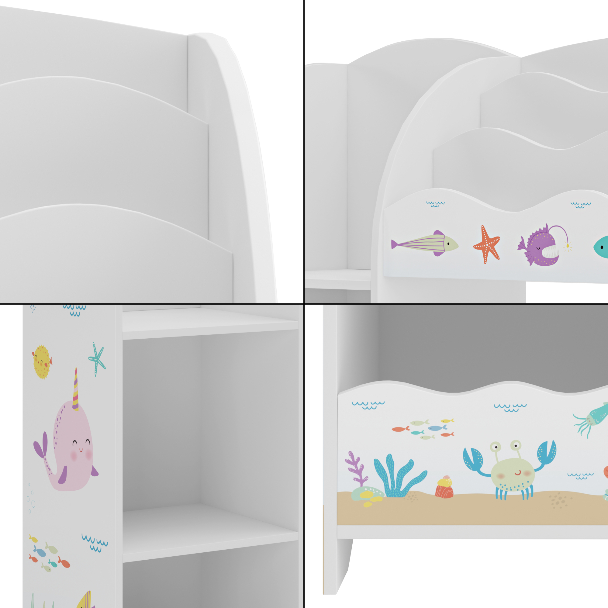 - Kinderregal: Weiß mit Ozean-Motiv