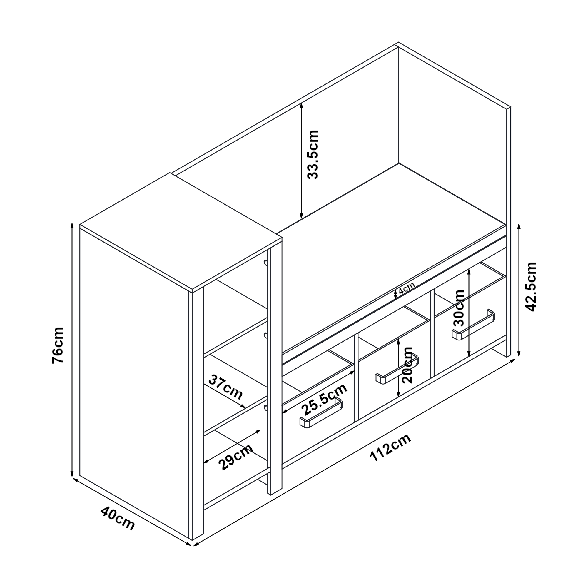 - Gesamt (HxBxT): 76 x 112 x 40 cm