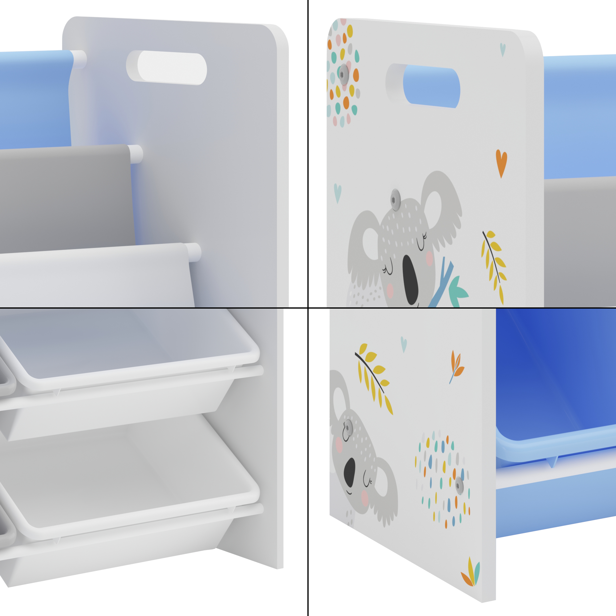 Mit seinem kinderfreundlichen Design fügt sich das Standregal nahtlos in jedes Spiel- oder Kinderzimmer ein. Es bietet eine praktische und ästhetische Lösung zur Aufbewahrung verschiedenster Gegenstände und fördert die Selbstständigkeit der Kinder beim Aufräumen ihrer Spielsachen.