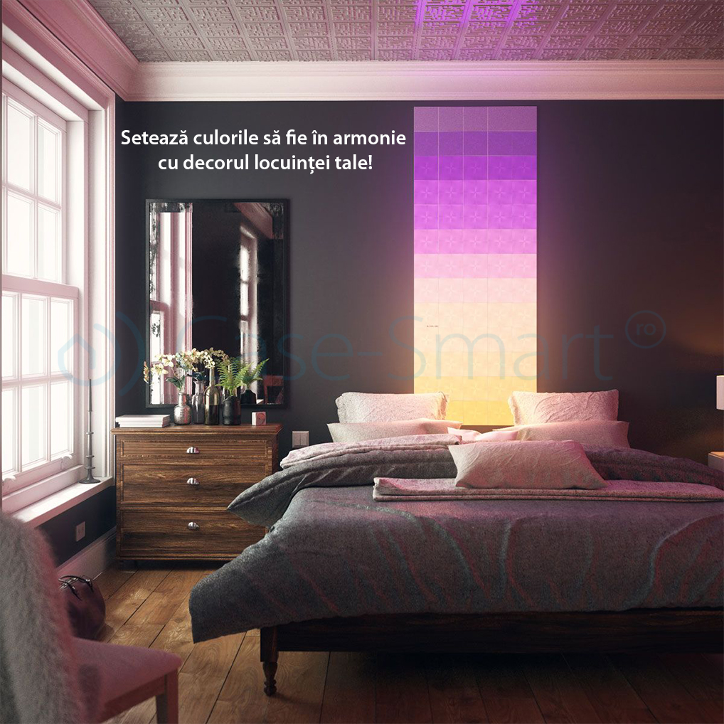 Kit 9 Panouri luminoase inteligente Nanoleaf Canvas cu senzor muzica, LED RGBW, Wi-Fi, Control tactil, Control de pe telefonul mobil SmartElectro IntelligentHouse